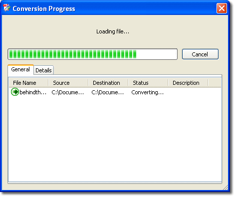 Conversion Progress Indicator. The progress indicator in Solid Converter will alert you to any problems encountered during the conversion process...
