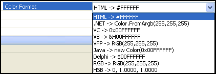 Faites-vous de la conception graphique et des graphiques Web? Vous pouvez voir les valeurs de couleur en différentes formats. Sous Options de capture de la couleur, cliquez sur la flèche déroulante vers le bas à côté de la zone Format de la couleur. Par exemple, vous pouvez afficher les valeurs de couleur en RGB plutôt qu’en HTML lorsque vous utilisez l’option Capture de la couleur.