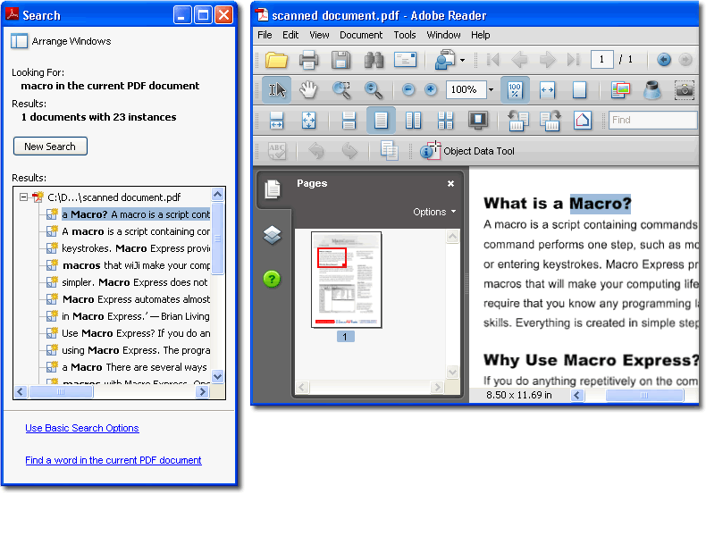 Adobe Reader での PDF の検索. Adobe Reader などのアプリケーションを使用して PDF ドキュメントのテキストを検索できます。他のアプリケーションでドキュメントにインデックスを付け、多数のアーカイブされた PDF ドキュメントでテキストを検索できます。