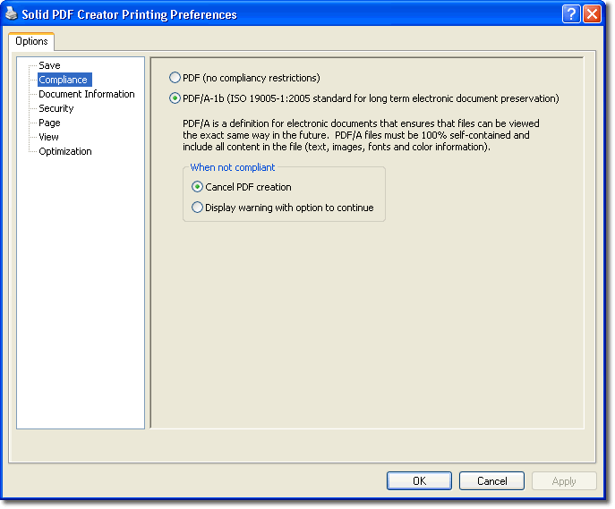 Solid Documentos é um membro da crescente PDF/A Grupo do Centro de Competencia. O PDF/A Competence Center é uma cooperação entre várias empresas e líder mundial de especialistas em tecnologia de PDF campo. O objectivo do Centro de Competencia é de promover o intercâmbio de informações e experiências na área de longo prazo documento arquivamento, em conformidade com a norma ISO 19005-1, com base no formato de arquivo PDF. Estamos ansiosos para trabalhar com os seus membros para a adesão com a presente norma ISO, a fim de garantir um elevado nível de qualidade na nossa PDF / A criação do software.